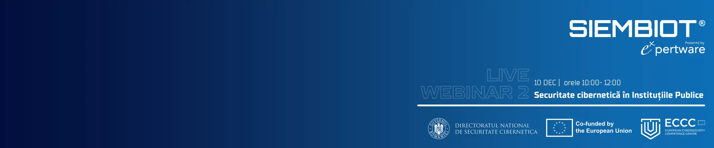 Pe 10 decembrie 2025, a avut loc webinarul „Securitatea Cibernetică pentru Instituțiile Publice - NIS2”, organizat de Directoratul Național de Securitate Cibernetică (DNSC), în parteneriat cu Expertware, în cadrul proiectului european SIEMBIOT.